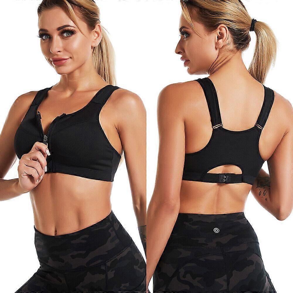 Women Zip Front Sports Bra Wireless Post-Surgery Bra Active Yoga Sports Bra US