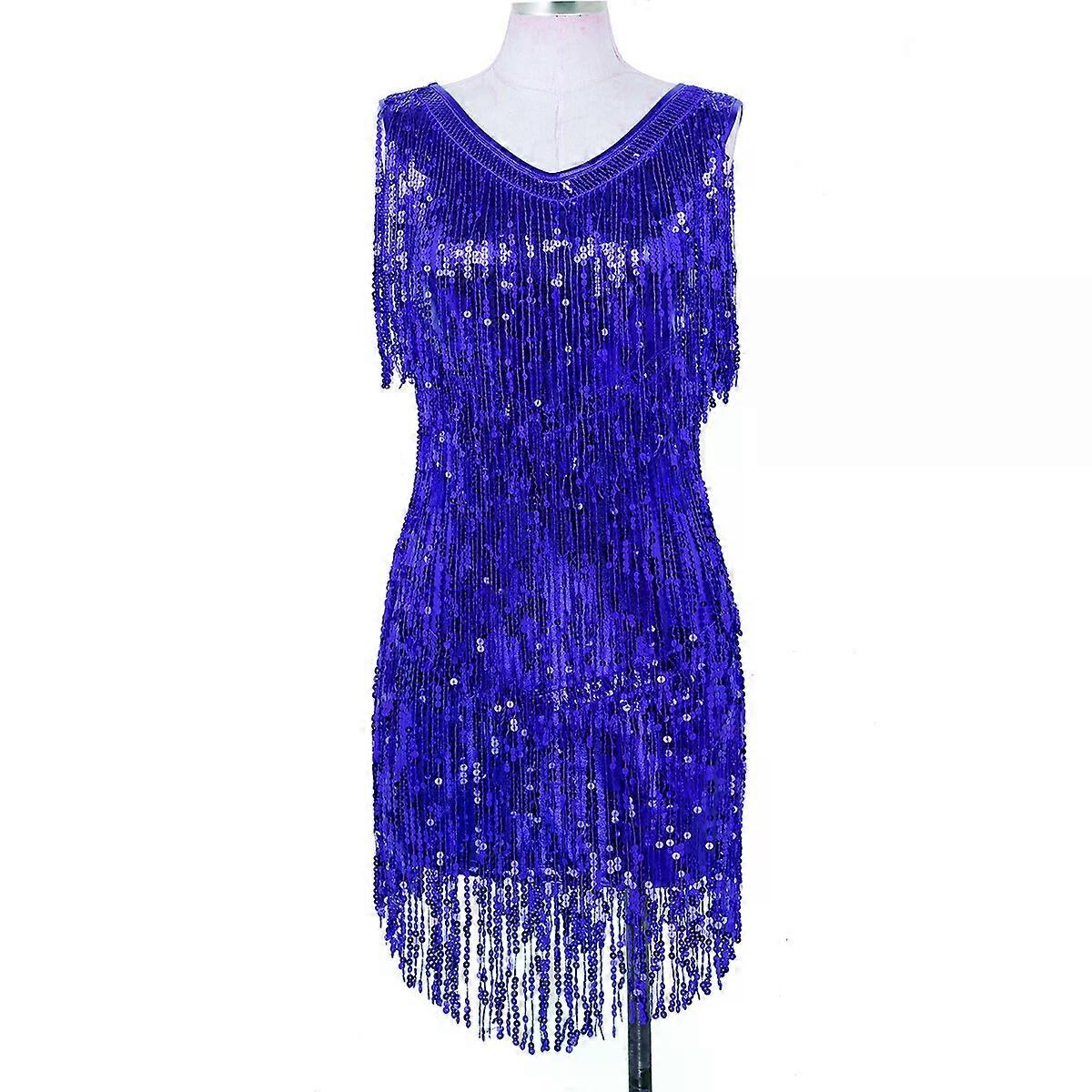 Women's Sequin Latin Salsa Tango Rumba Cha Cha Ballroom Dance Dress Skirt Tassel