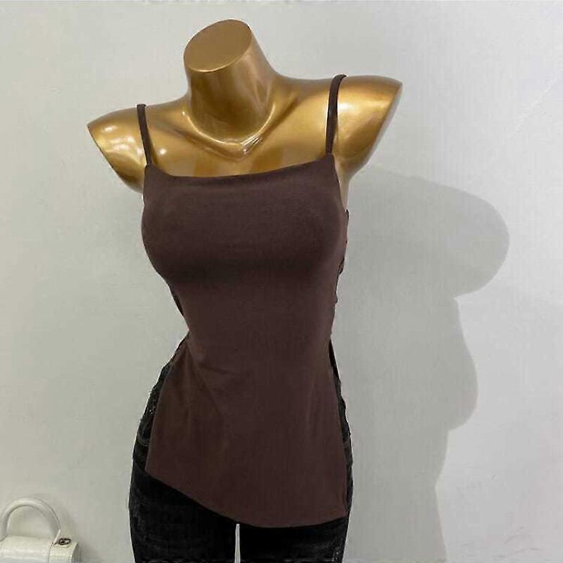 Lady Irregular Camisole Spaghetti Strap Vest Slim Slit Basic Tank Tops Tees Sexy