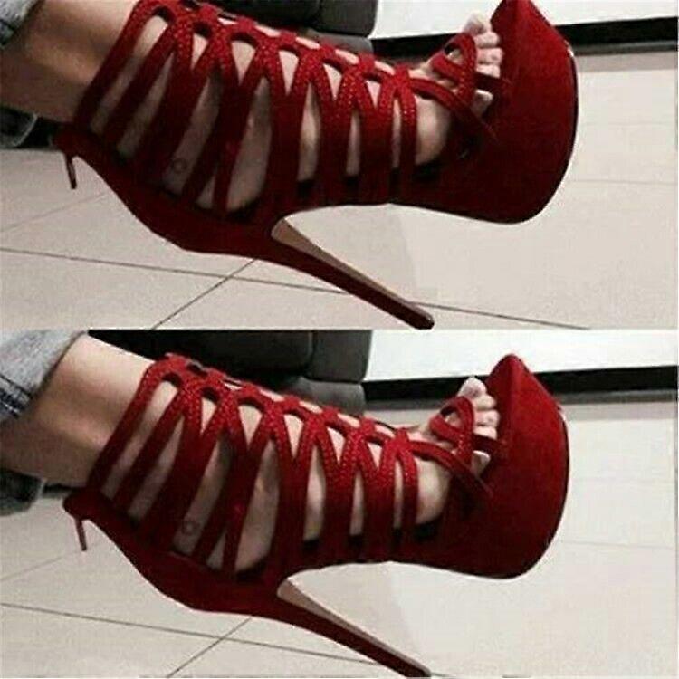 Sexy Women Sandals Patform Open Toe High Heels Wine Red Shoes Woman Size 4-20