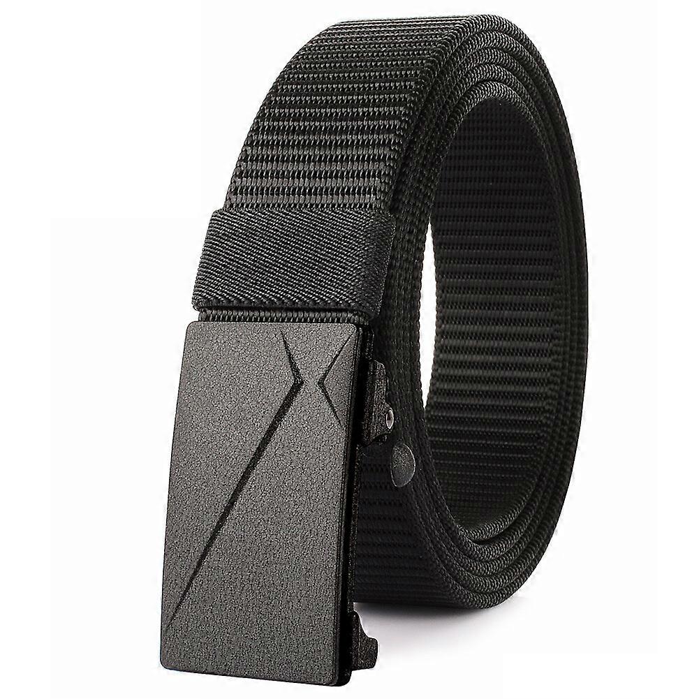 Men Belt Automatic Ratchet Slide Buckle Nylon Plus Size To190cm Black Tactical