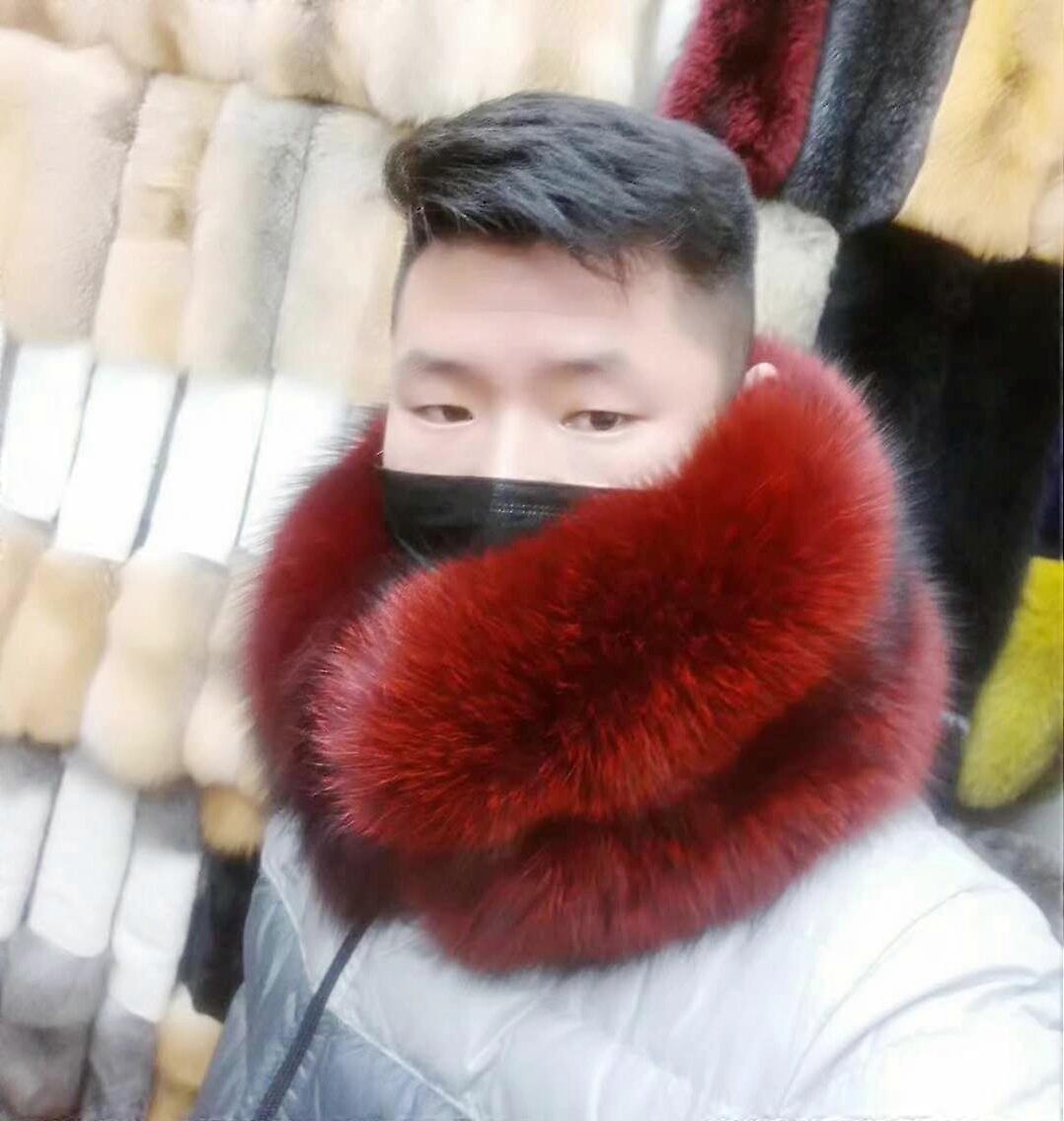 Men' Luxurious Fur Scarf 100% Real Raccoon Fur Collar Wrap with Silver Fox Fur