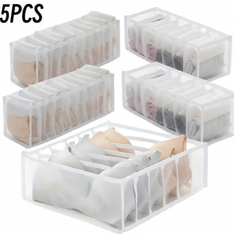 5-Pack Home Storage Boxes Foldable Plaid Underwear Combination Bags - Nylon Drawer Dividers for Socks, Panties and Underwear