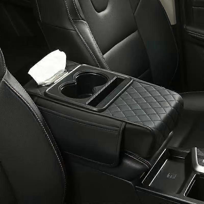AutoVerve Elite-Car Armrest Box Storage Bag, Multifunctional Armrest Box Mat with Cup Holder, Tissue Box, Central Elbow Heightening Mat, Car