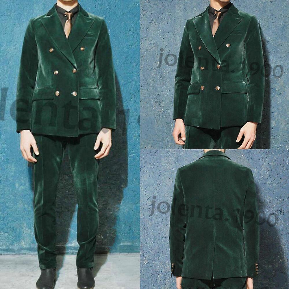 Vintage Green Men Suit Velvet Double-Breasted Blazer Wedding Party Tuxedo Custom