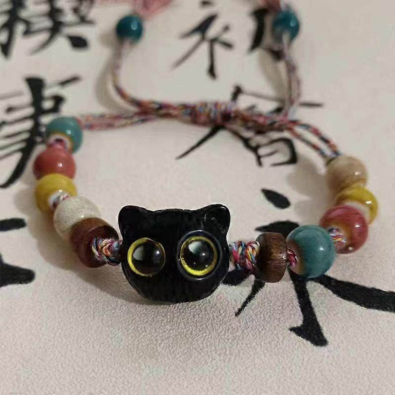 Cute Cartoon Cat Bracelet For Women Girls Creative Colorful Adjustable Woven Rope Bracelets Unique Cat Beaded Charm Bracelets