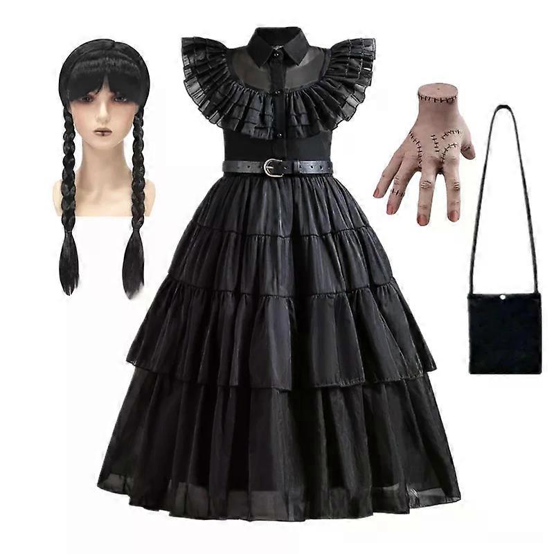 Wednesday Addam Cosplay Jurk Voor Kinderen Meisjes Film Wednesday Cosplay Kostuums Zwarte Gothic Jurken Halloween Fees