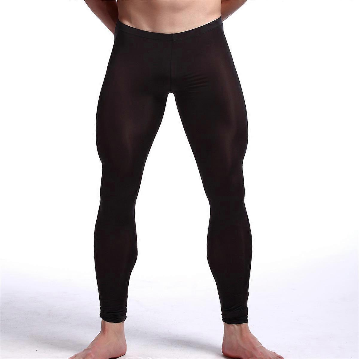 Mens Long Johns Ice Silk Homme Pants See Through Sleep Bottoms Trousers Leggings