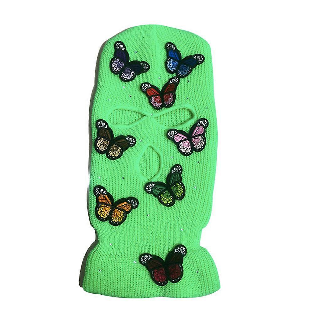 Creative 3 Hole Mask Knitted Full Face Hat Realistic for Butterfly Patch Balaclava Outdoor Skiing Motorcycling for M Green