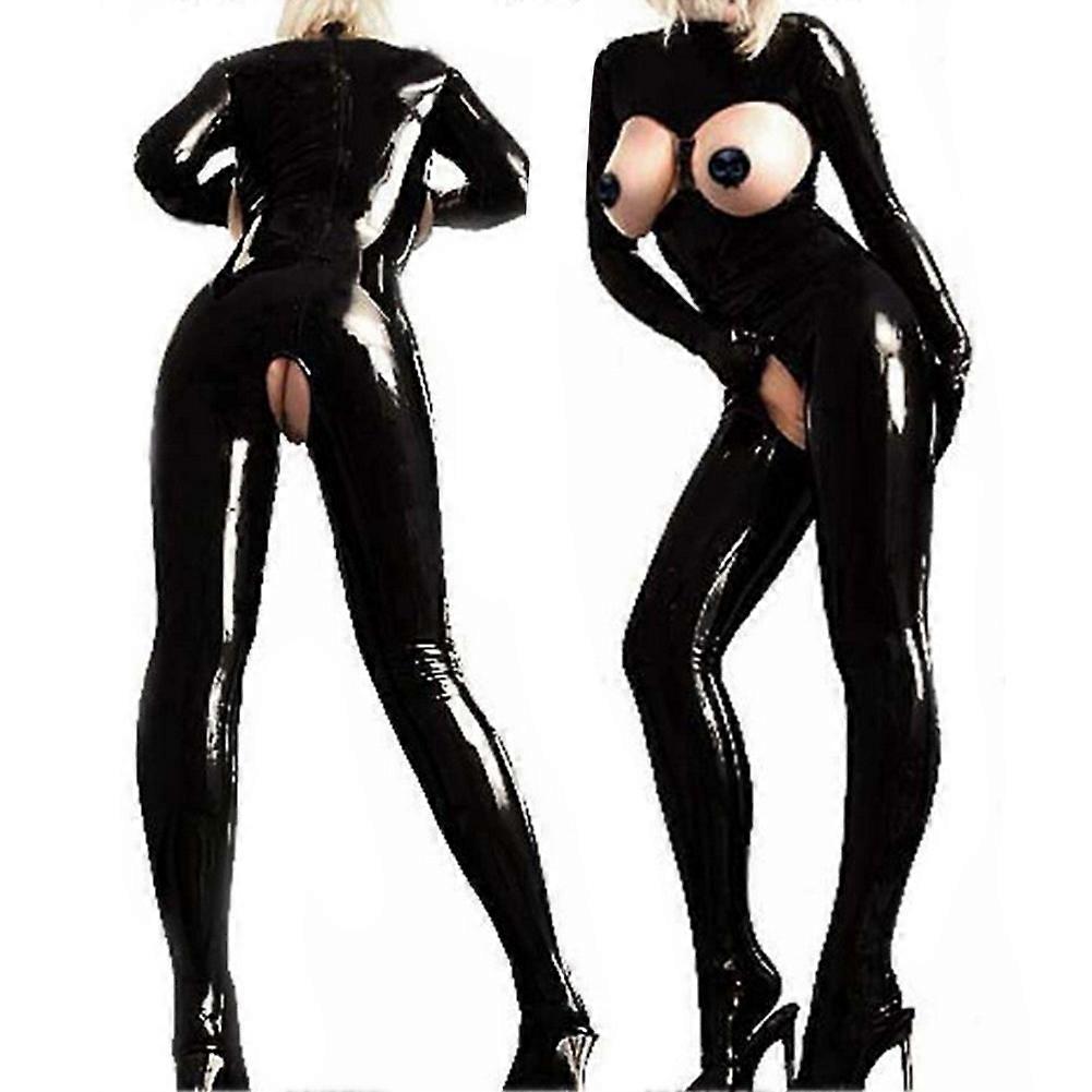Latex Catsuit Open Bust Bodysuit Women Costume Open Crotch Jumpsuit Halloween