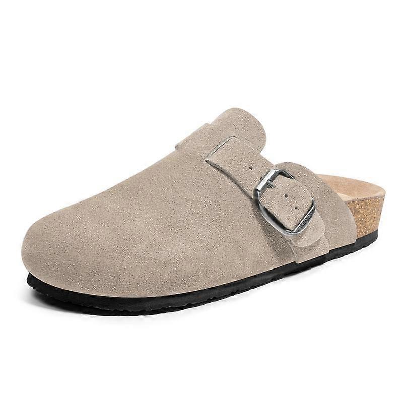 FITORY Women��s Suede Clogs, Womens Round Headed Cork Clogs, Suede Leather, Adjustable Straps Size 6-11
