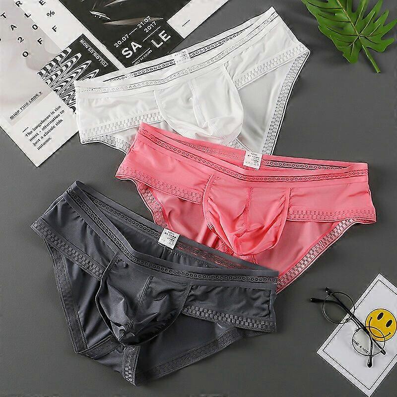3PC Men's Underwear Briefs Ice Silk U Pouch Men Underwear Sexy Lingerie Low-Rise