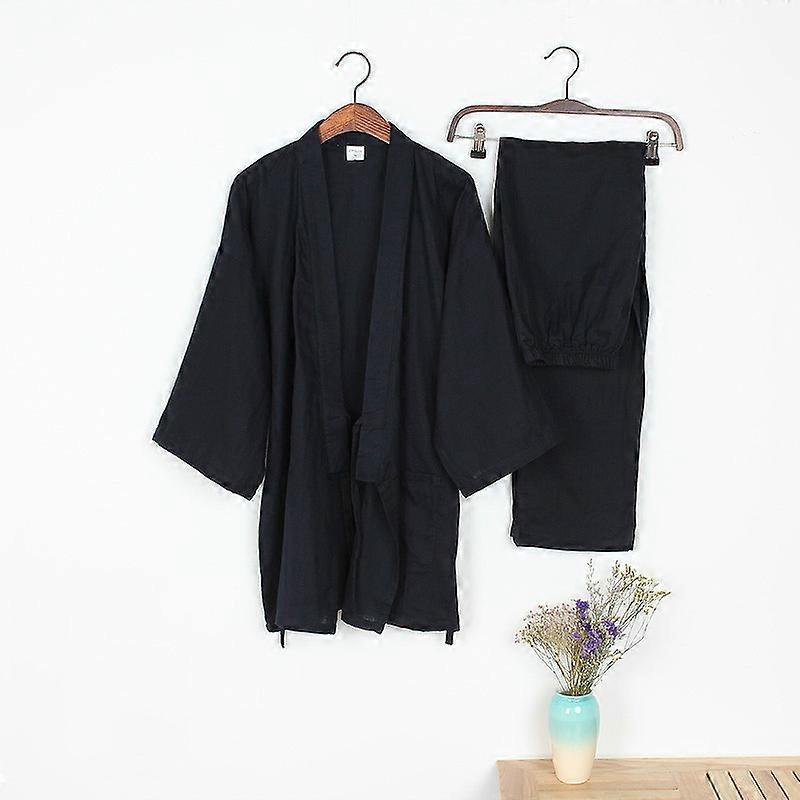 Men Cotton Winter Long Kimono Pajamas Pants Set Home Wear Nightwear Japanese New