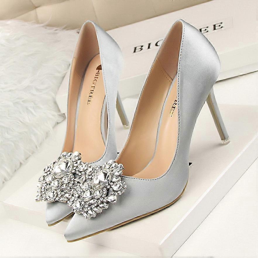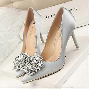 Plus Sz Women Green Satin Point Toe Rhinestones Heels Bridal Pumps Wedding Shoes