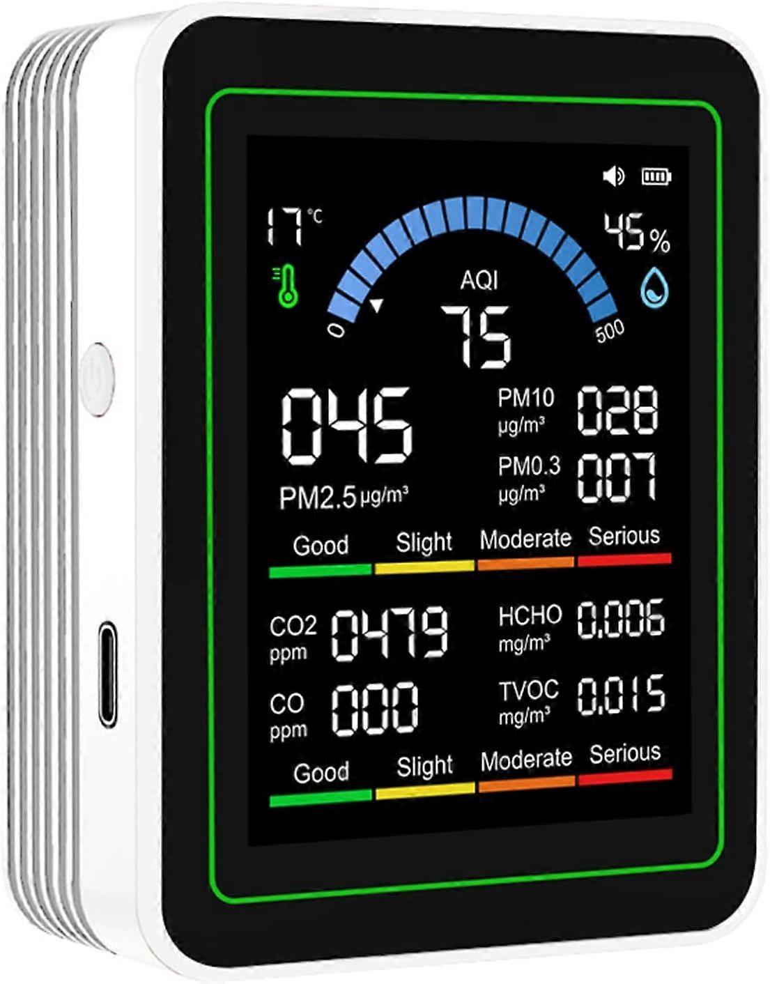 Indoor Air Quality Monitor, 10 in 1 Portable Smartair Quality Tester for CO2 | CO | TVOC | HCHO | Temp | AQI | PM0.3-10 Detection Hum for Home Cars Pl