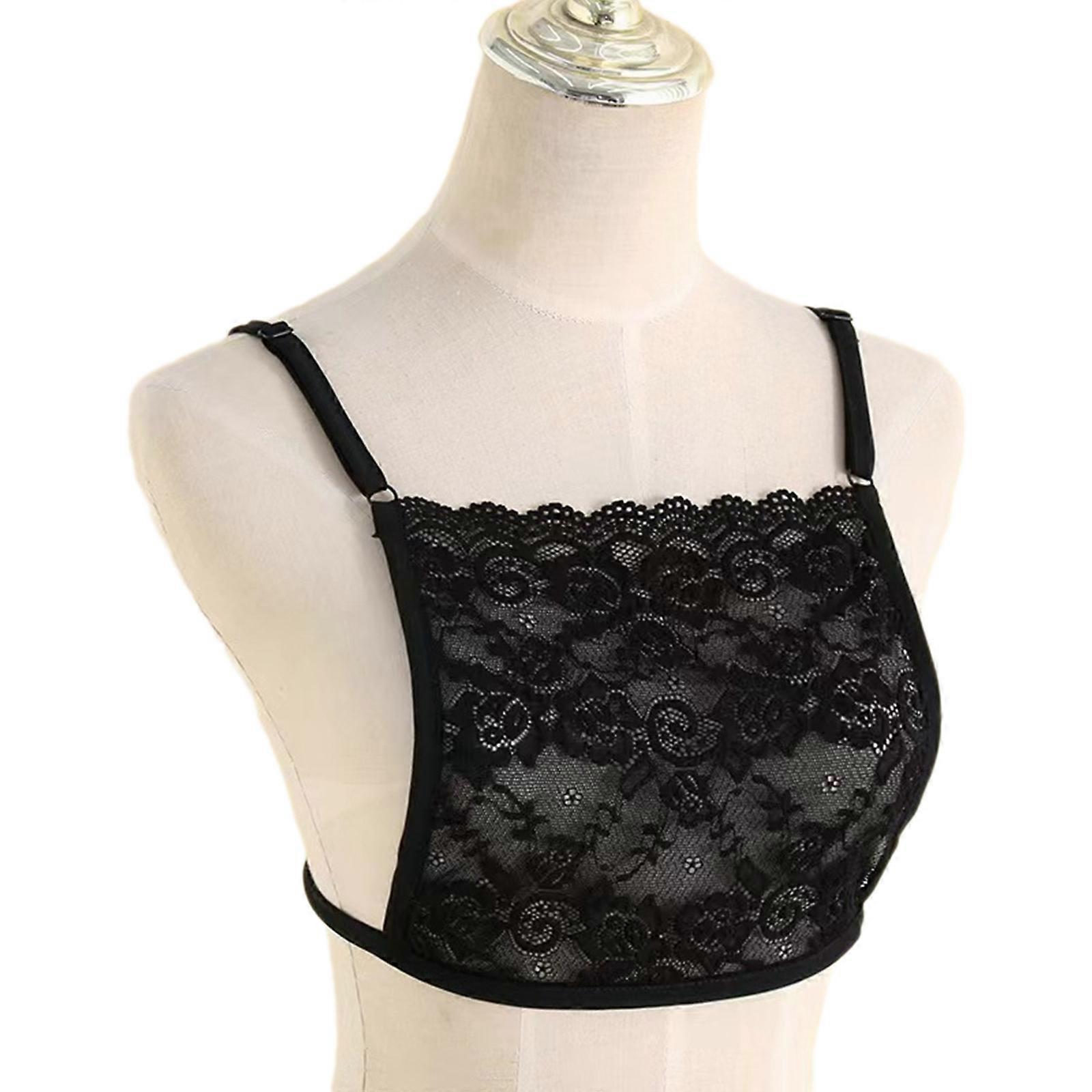 Women Girl Flower Lace Mock Camisole Bra Modesty Panel Cleavage Cover Up for Low Neckline Wrapped Chest Overlay Crop Top Black