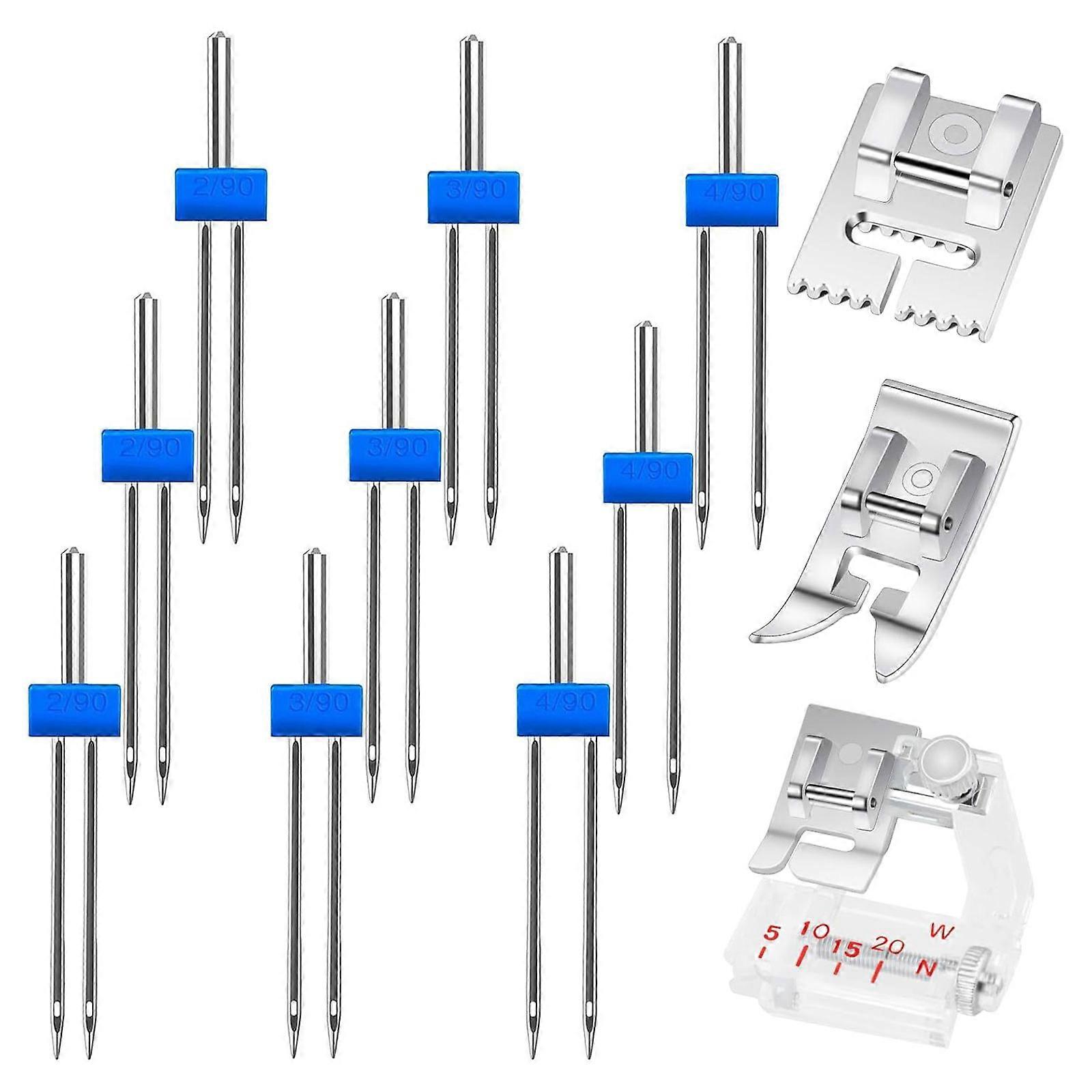 9Pcs Twin Needle and 3 Sewing Presser Feet Domestic Sewing Machine Needle 2/90 3/90 4/90 For Household Sewing Machine Multicolor