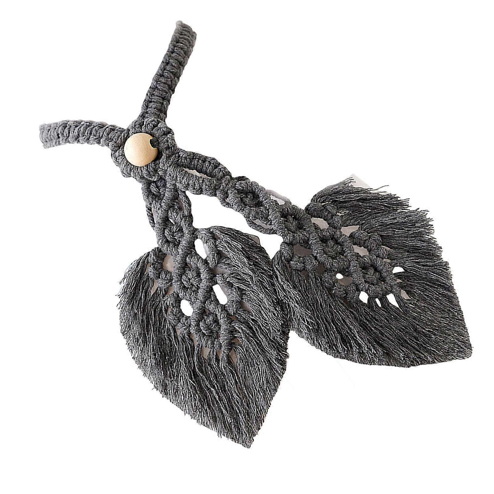 Hand Knitting Curtain Tieback Window Drape Tie Cotton Rope Double Leaf Tassels Curtain Holdback with Wood Bead Decors Grey