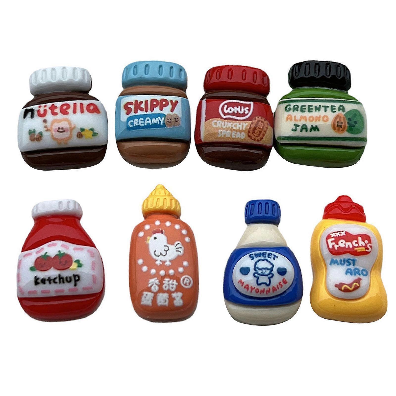 8Pcs Glossy Cute Sauce Bottle Resins Mini Refrigerator Magnets for Photos and Note Display Holders Fridge Magnets Gift Multicolor