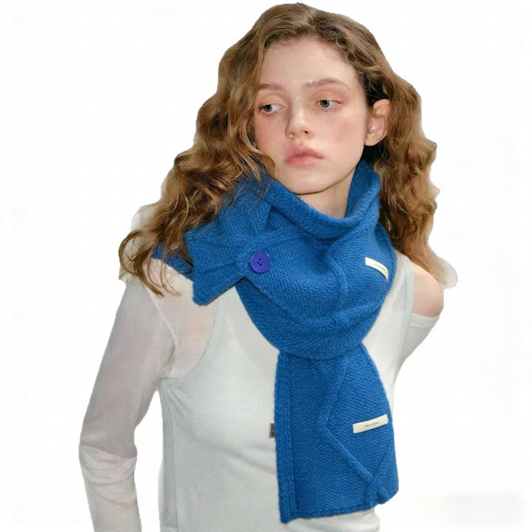Winter Wool Button Scarf Women 115cm Elastic No-Tight Warm Wrap