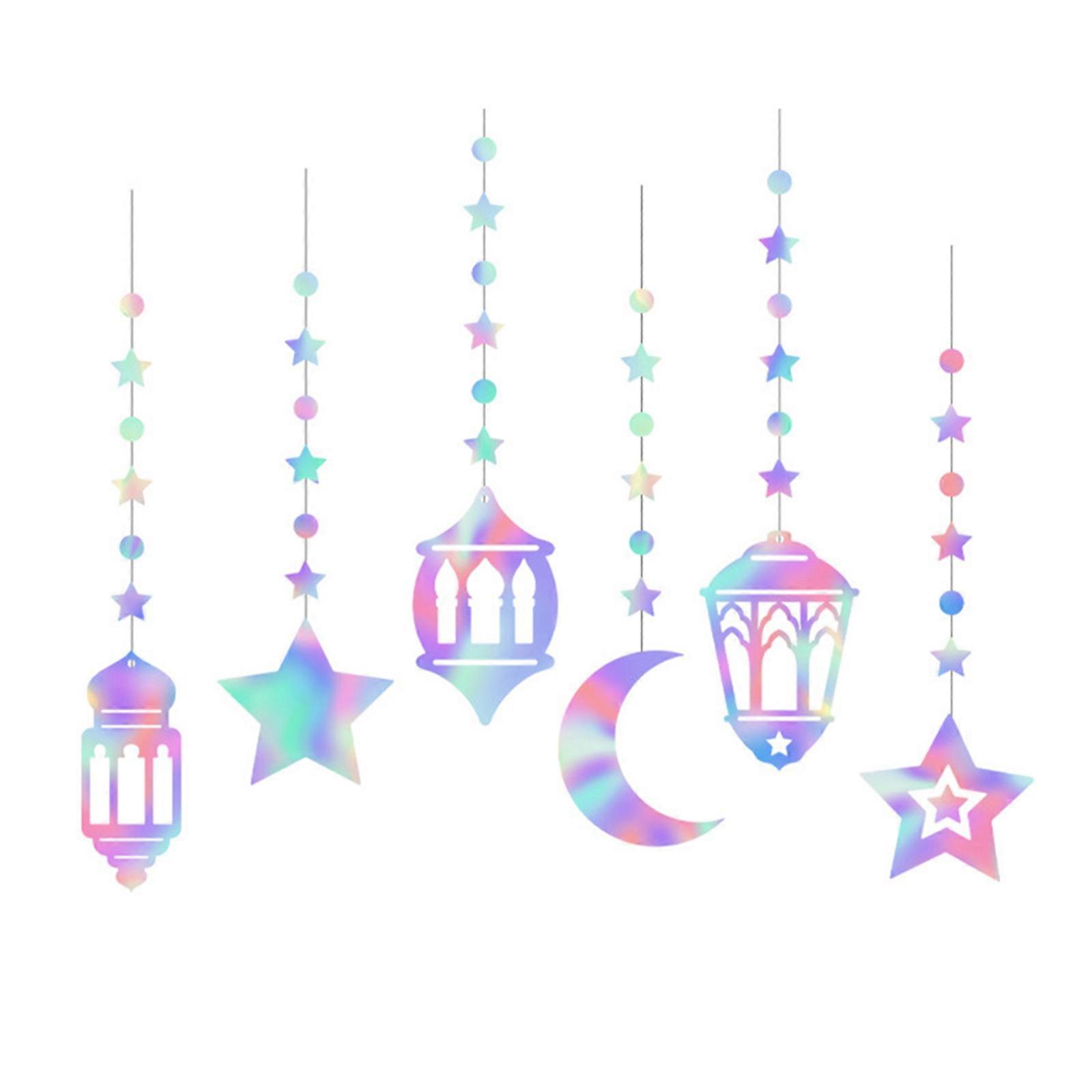 Sparkles Star Moon Garlands Islams Party Decorations Islamic Home Ramadans Hanging Banners for Wedding Birthday Party Multicolor
