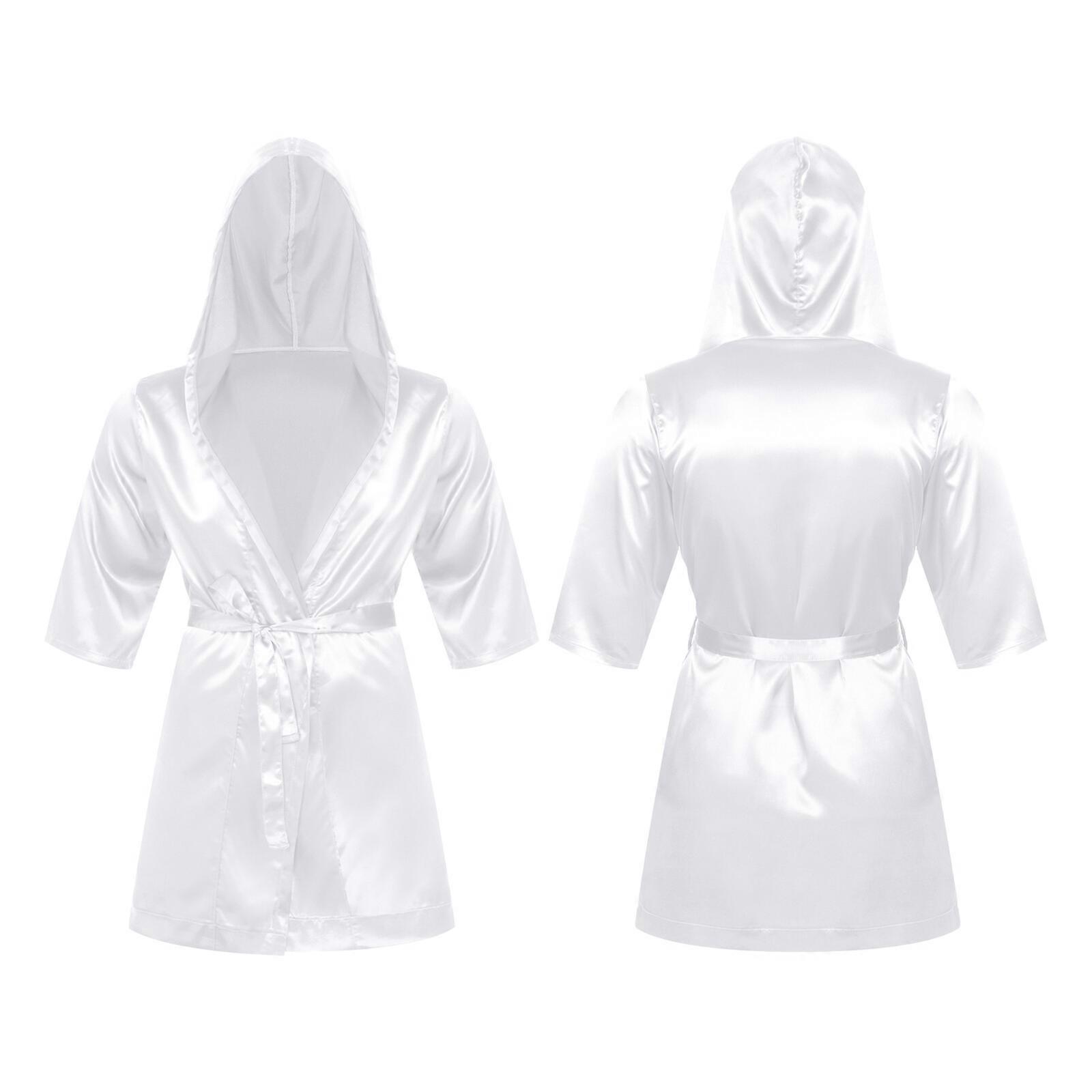 Mens Adult Nightgown Hooded Robes homewear Satin Short Bathrobe Bathrobe