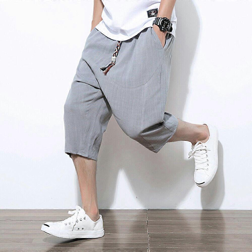 Mens Linen Capri Pants Shorts Drop Crotch Harem 3/4 Trousers Crop Retro Vintage