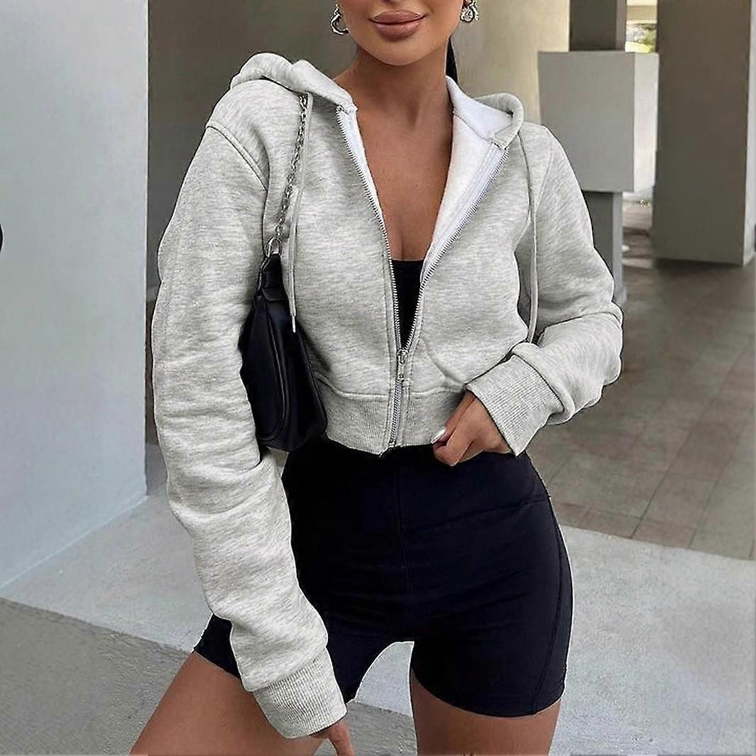 Women's Long Hooded Zipper Cardigan Sweatirt Polyester Fiber ort Sve Pure Color Spring Season Faion Ladies' Wear