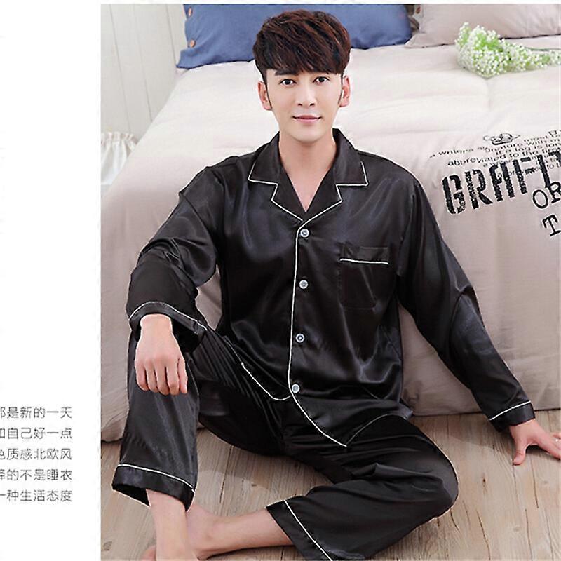 Men Women Silk Satin Pajamas Set Couple Sleepwear Lovers Unisex Nightwear Plus