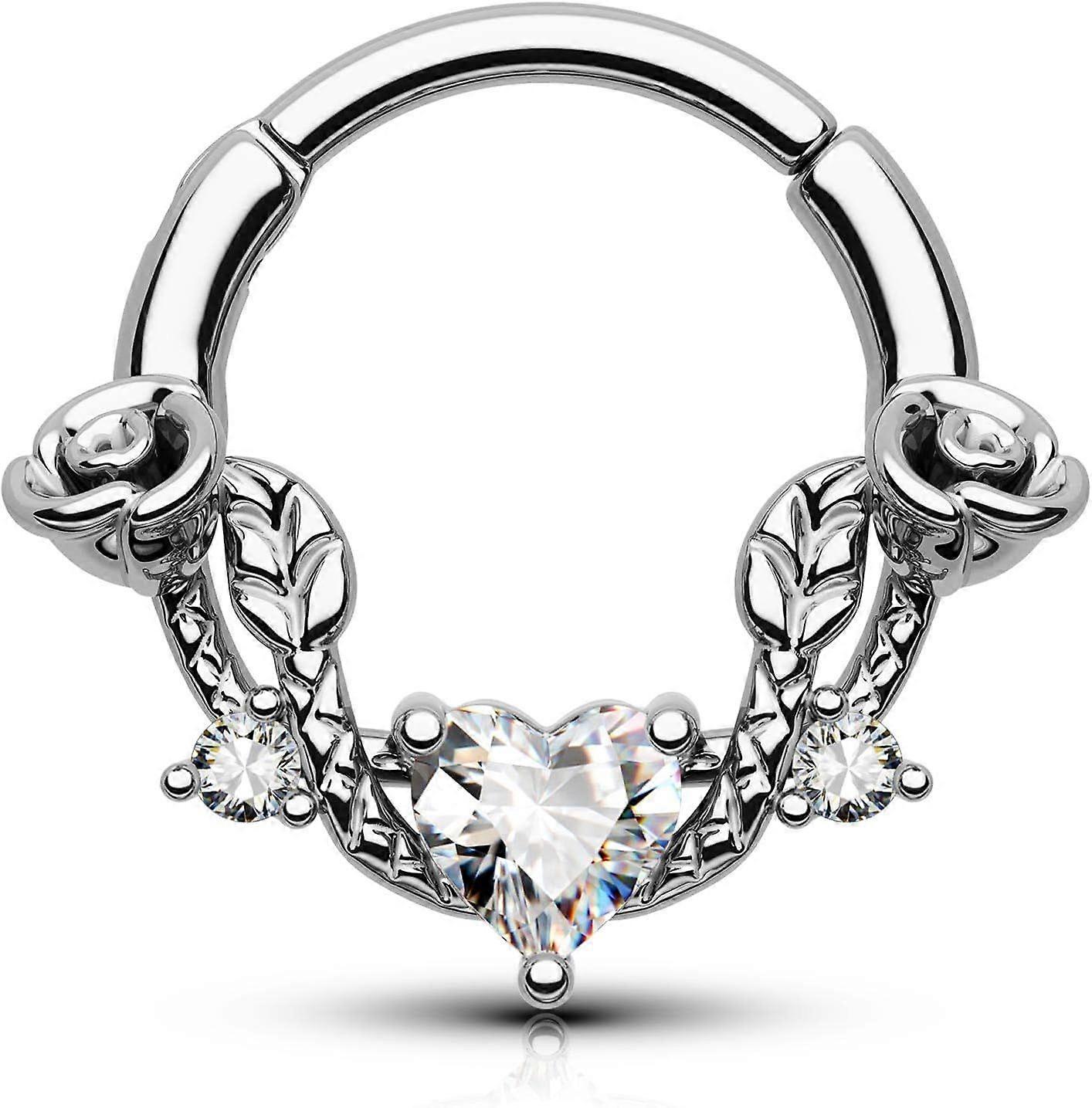 Rose Septum Ring 16G Hinged Segment Rings 316L Stainless Steel Daith Earrings Heart Septum Daith Helix Cartilage Piercing Jewelry Piercing Jewelry