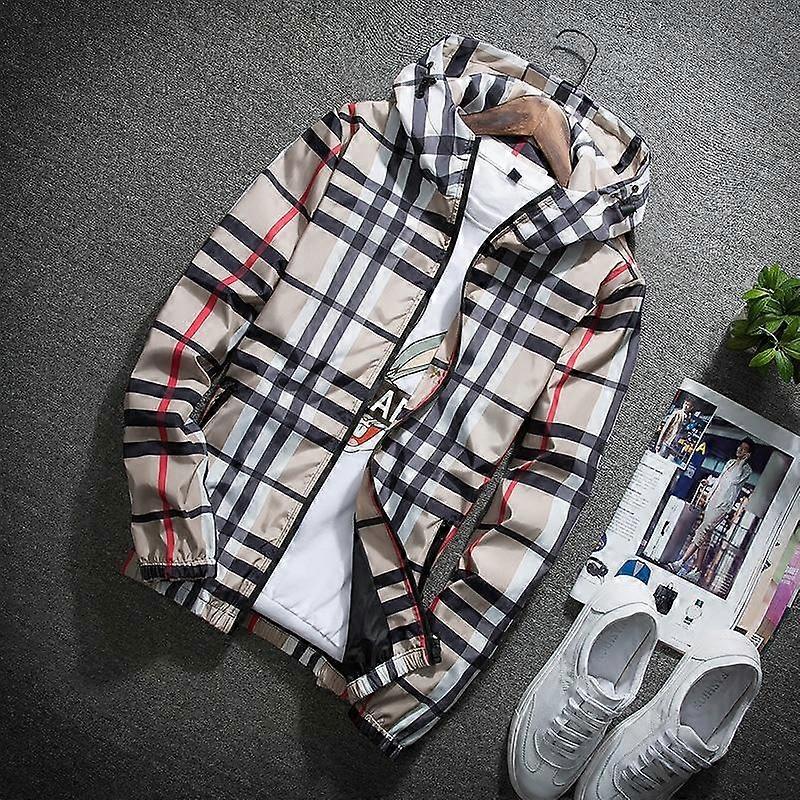 Men's Lightweight Hooded Jacket Zip-Up Windbreaker with Adjustable Drawstring & Color-Block Stripes for Autumn Fashionable Style Casual Mens