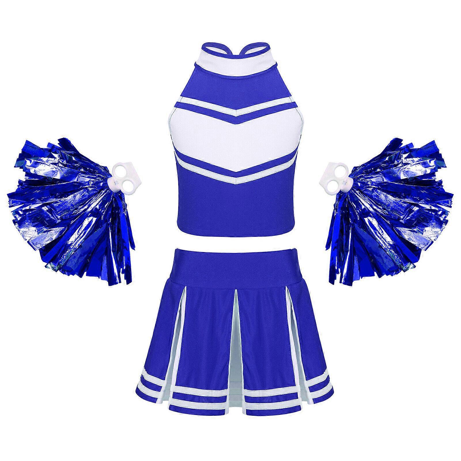 Kids Girls Cheer Leader Costume Students Girls Uniform Dress with Pom Poms