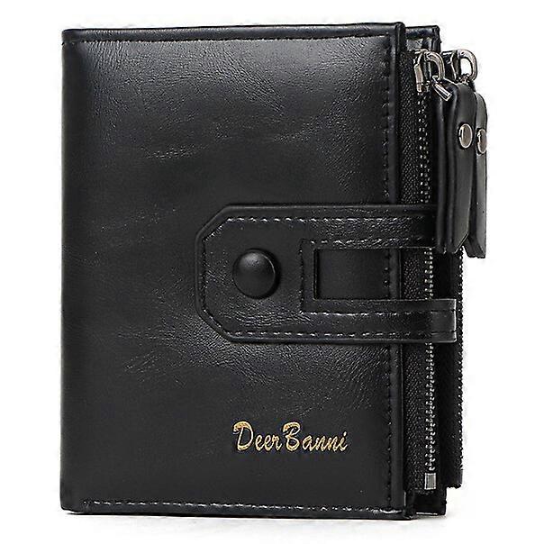 Leather Compact Wallet for Men Double Zipper Credit Card Holder with ID Window