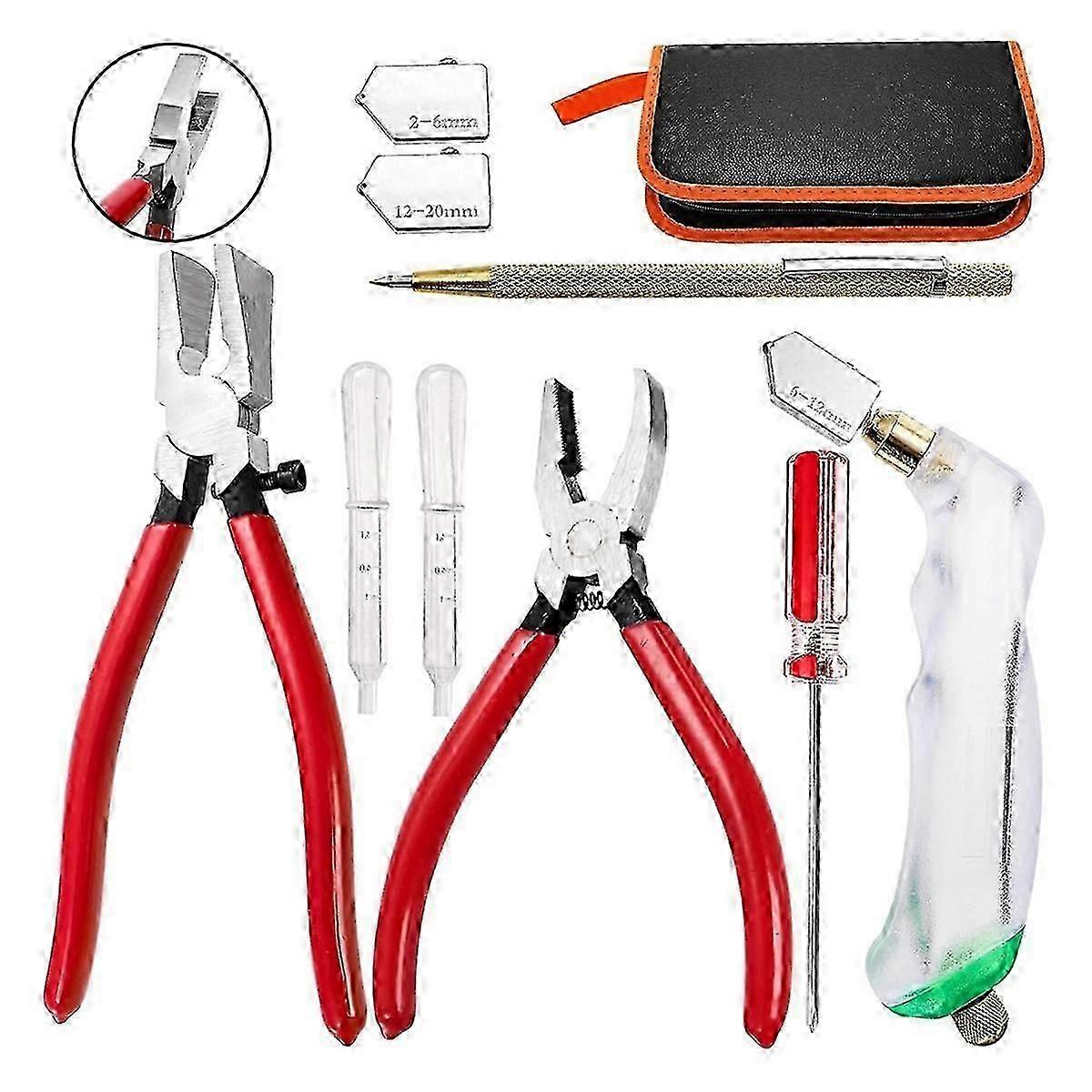 9Pcs Glass Running Breaking Pliers and Glass Cutter Kit, Breaker Grozer Pliers with Curved Jaws, for Stained Glass, Tile szsh02