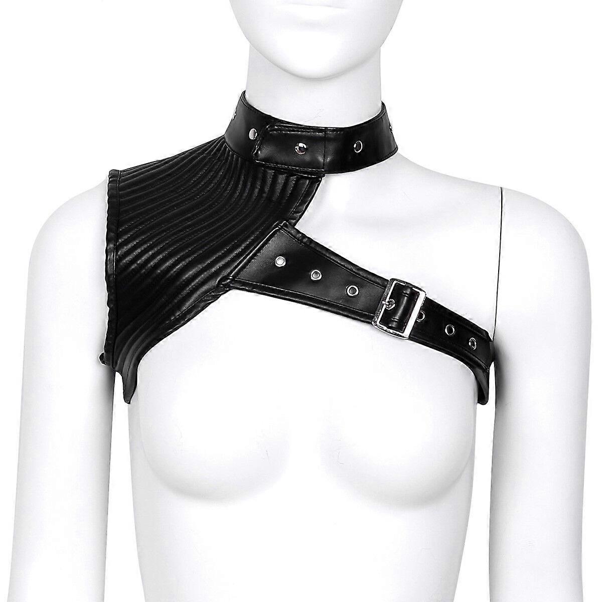 Black Women Goth Lingerie PU Leather Shoulder Harness Body Half Tank Top Bustier