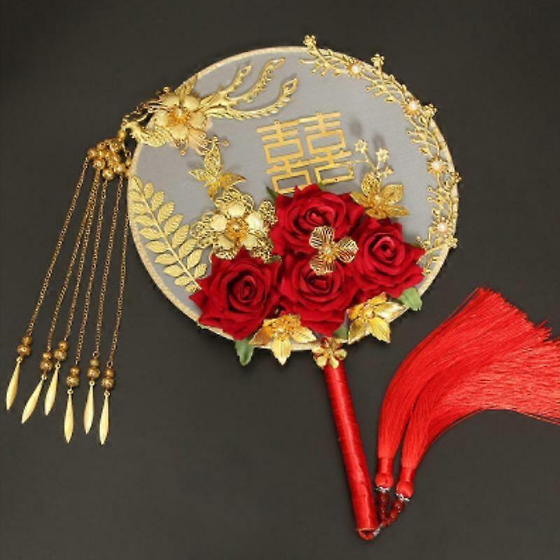 Chinese Ancient Bride Round Hand Fan Wedding Bouquet Gift Photography Props