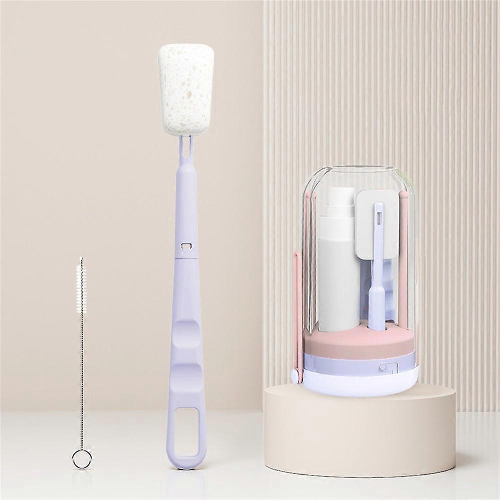 7Pcs / Set Wood Pulp Cotton Baby Bottle Cleaning Brush Kit Newborn Nipple Brush with Storage Box Dispensing Bottle