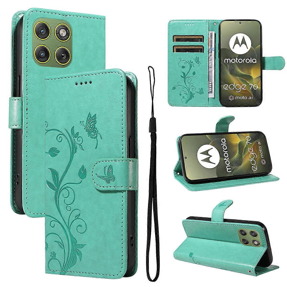 Compatible For Motorola Edge 70 5G PU Leather Cases Flower Pattern Wallet Stand Phone Cover with Strap