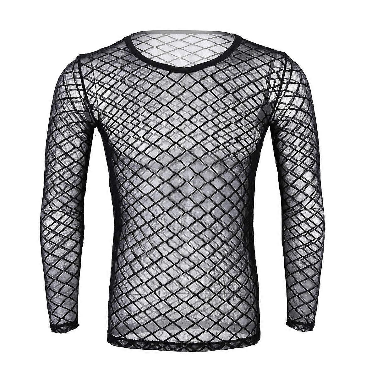 Men's Long Sleeve Fishnet Mesh T-shirt Top Blouse Clubwear Costumes Undershirts