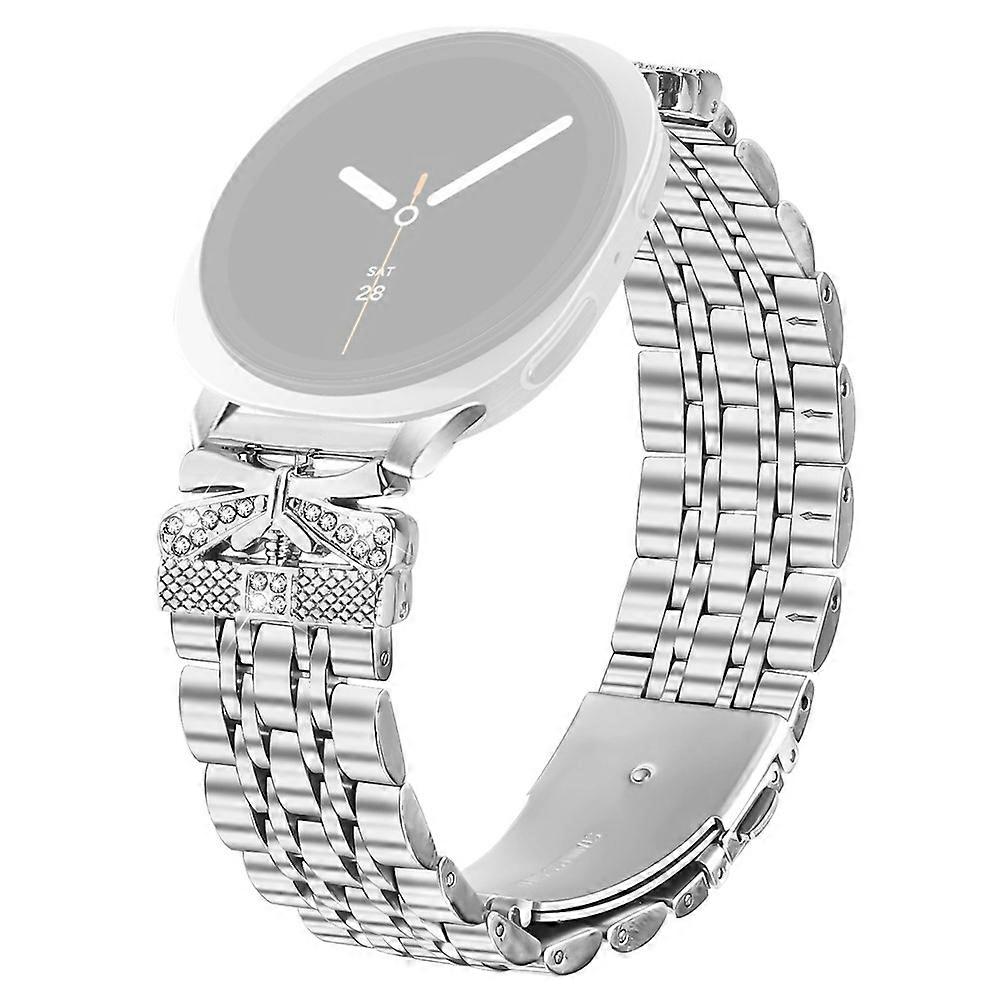Metal Watch Band Compatible For Samsung Galaxy Watch8 44mm / 40mm / 8 Classic 46mm Rhinestone Butterfly Decor Stainless Steel Silv