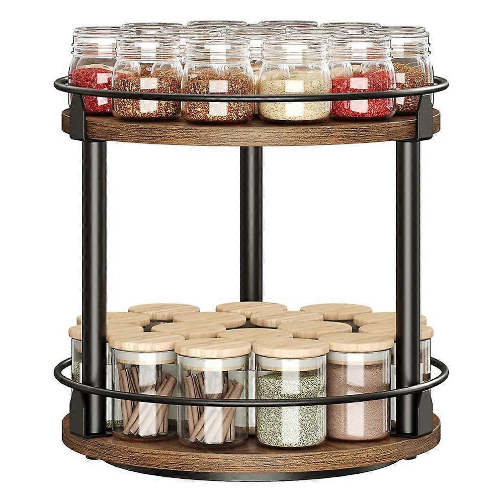 2-Tier Rotating Spice Rack Space Saving Kitchen Seasoning Organizer Metal Frame Storage Shelf