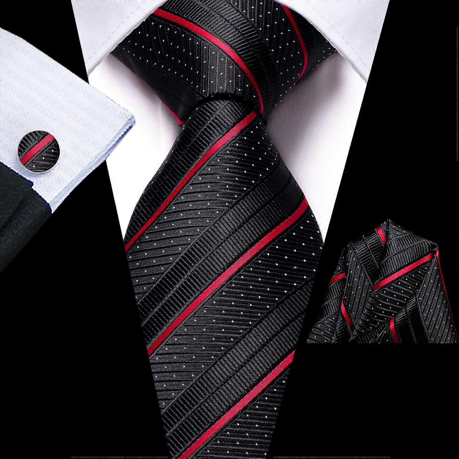 Mens Tie Red & Black Necktie Handkerchief Cufflinks Set Wedding Casual Work