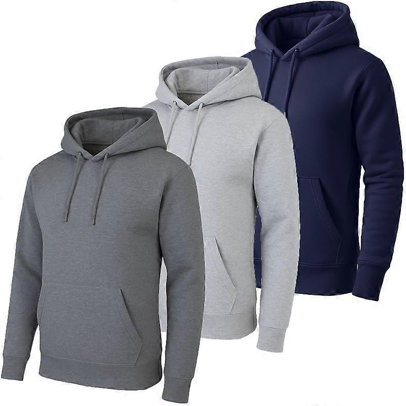 Men's 3 Pack Heavyweight Fleece Lined Zip & Pullover Hoodies Menswear Plain