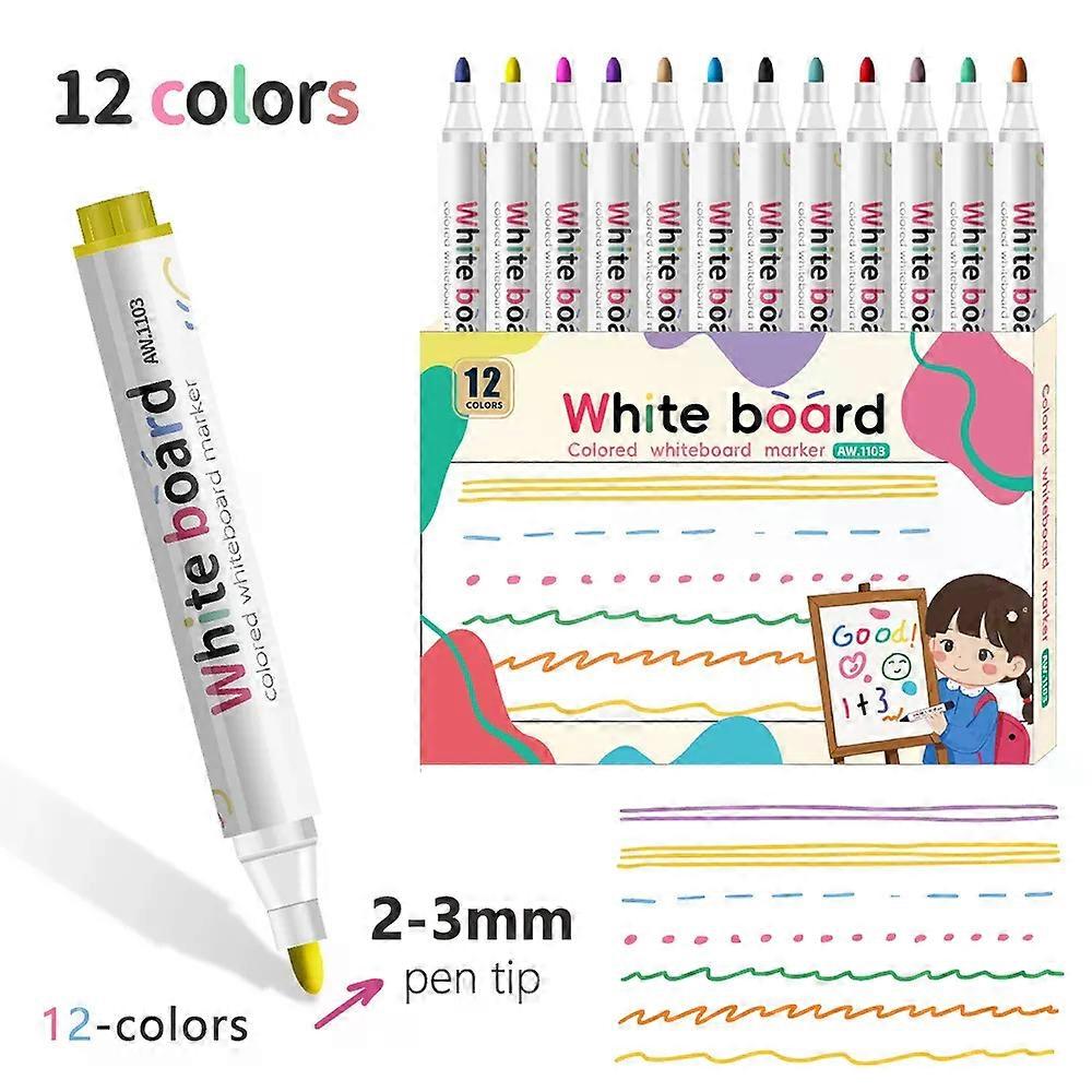 12 Colors Whiteboard Erasable Markers Quick-Drying High Capacity For Teaching Meetings Office Stationery School Supplies.
