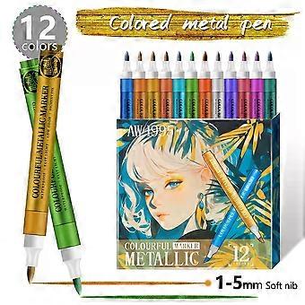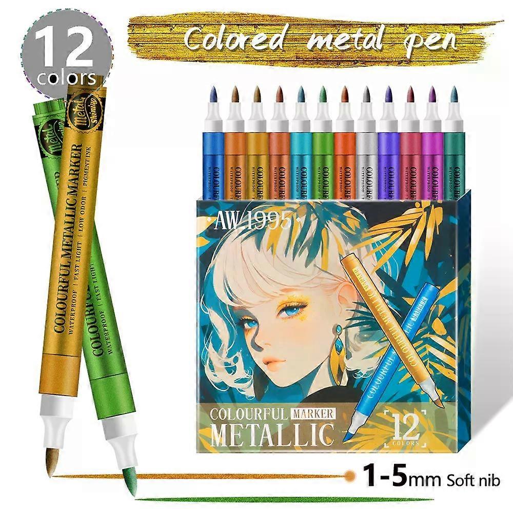 12 Colors Acrylic Paint Markers Set -Brush Tip, Waterproof, for Rock Painting, Wood, Canvas, Stone, DIY Crafts & School Supplies