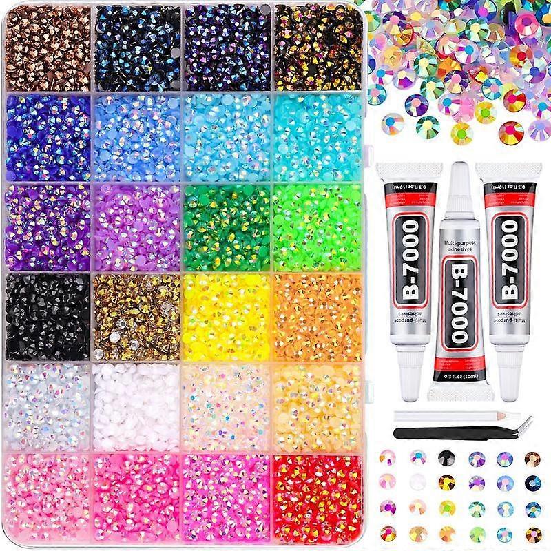 VIBRANT GEMS 26000Pcs Resin Rhinestones with Tweezers for Crafting Mixed-Color 3mm Bedazzling Crystal with 3Pcs 10ml B7000 Jewelry Glue for