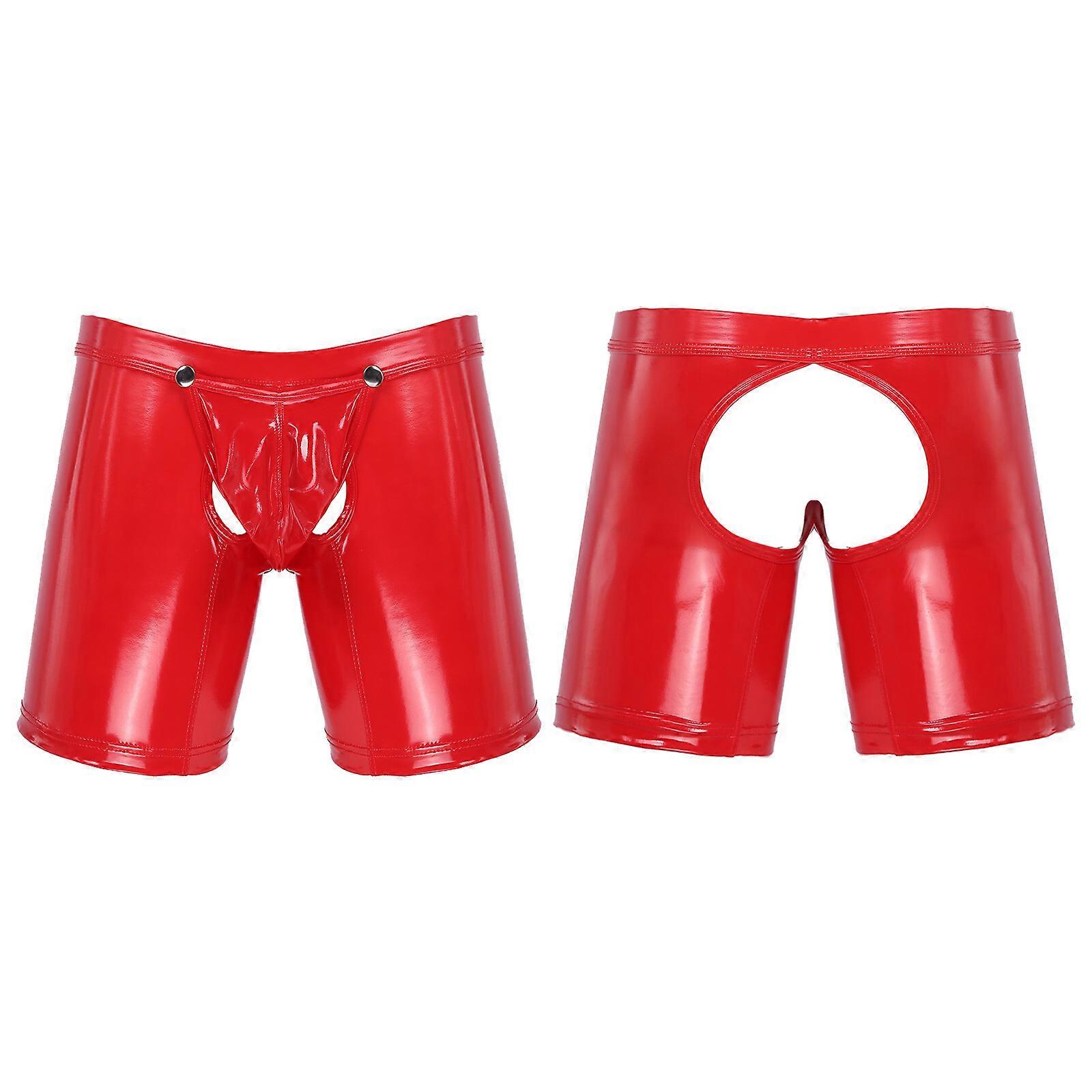 Mens Latex PVC Faux Leather Tight Short Pants Crotchless Boxer Shorts Hot Pants