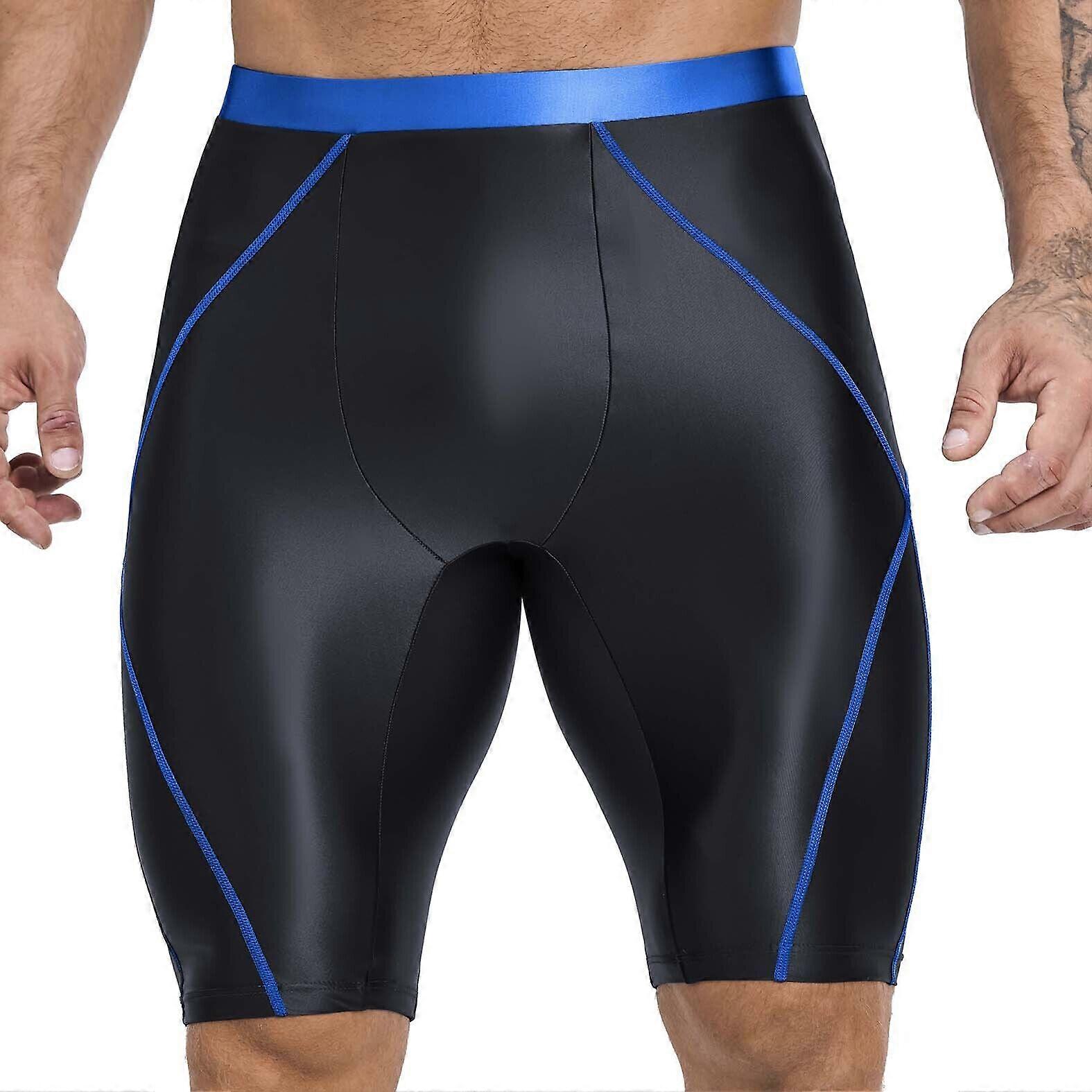 AMORESY Men Glossy Oil Knee-length Shorts Fitness Wrestling Running Tights Pants