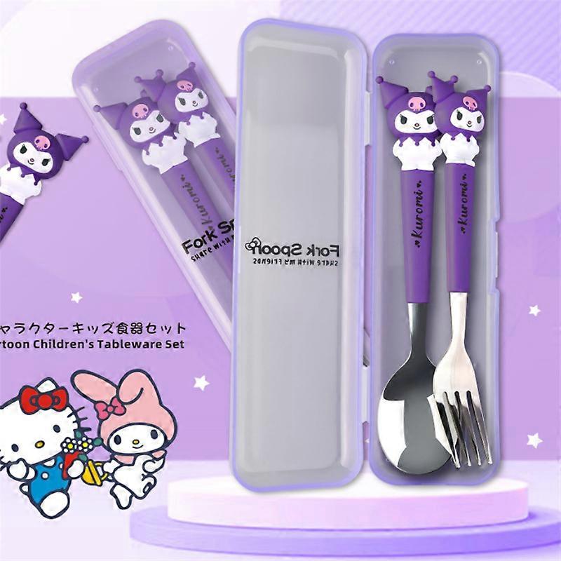 Ensemble de vaisselle en acier inoxydable Sanrio Kawali Hellokitty Kuromi My Melody Cinnamoroll Pompompurin (cuillère et fourchette) - Cadeau pour filles ?