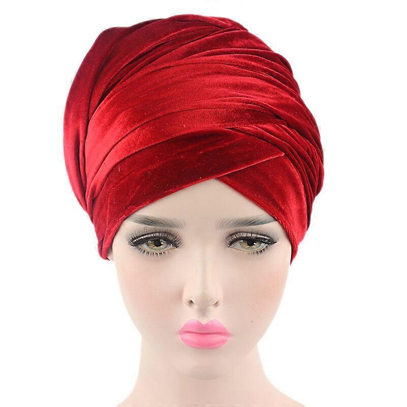 Luxury Women Velvet Mesh Nigerian Turban Long Head Scarf Headscarf Hijab Cap New